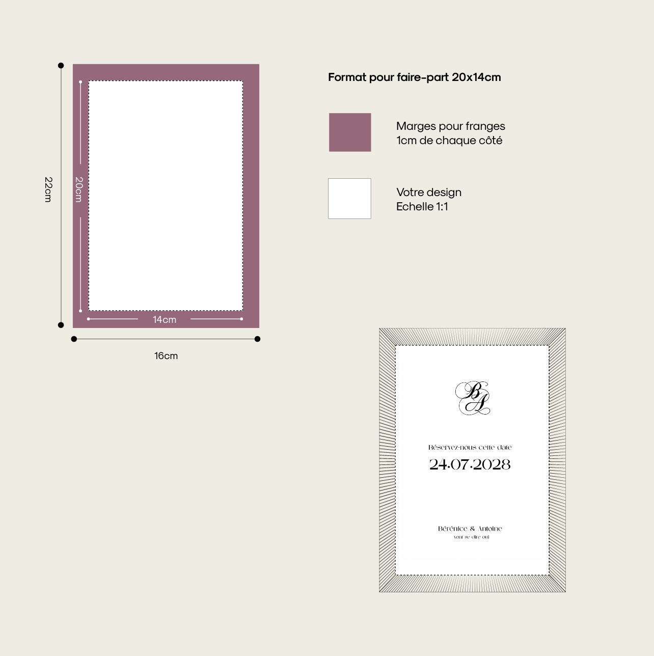 Vous pouvez concevoir votre fichier à l’aide d’un outil de design tel que Canva, en respectant les dimensions fournies et la résolution recommandée. Une fois le visuel finalisé, il suffit de nous transmettre le fichier pour impression. Si vous préférez être accompagné, nous pouvons également prendre en charge la conception graphique du faire-part afin de vous assurer un résultat équilibré, élégant et fidèle à l’esprit de votre mariage.